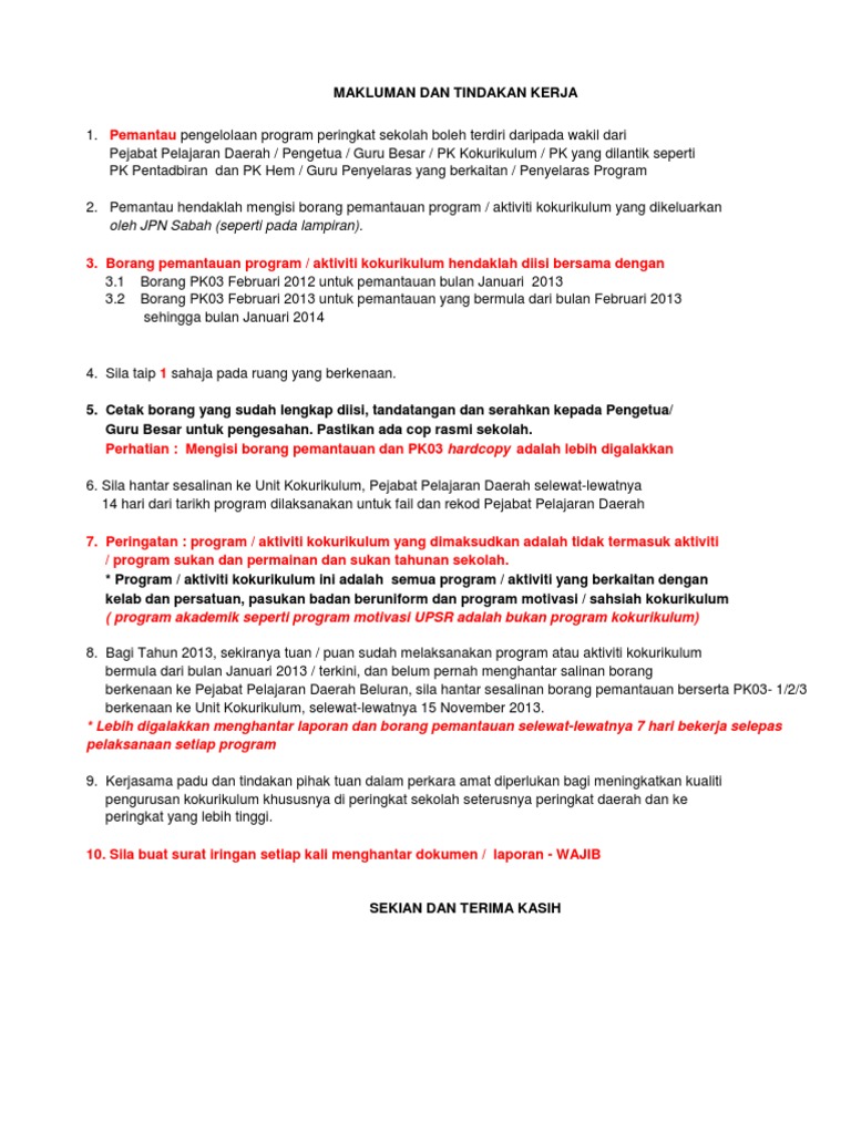 55 pemantauan aktiviti kokurikulum tubuh jawatankuasa pemantau buat perancangan pemantauan sediakan jadual pemantauan adakan borang pemantauan simpan rekod dalam fail. Contoh surat kebenaran bekerja semasa pkp bahasa melayu. Mohon kepada semua alumni ilp jitra untuk melengkapkan borang survey ini dengan kadar segera. Taklimat pajsk dan segak dalam talian 2015 oleh ju daerah pajsk. Komitmen, kesungguhan dan kerjasama daripada masyarakat setempat. Pemantauan berasaskan semakan skpm versi 2010 7. Perkara 0 1 2 3 catatan 1. Borang penilaian & senarai semak aktiviti kurikulum/kokurikulum/ hem. Memastikan pemantauan terhadap aktiviti dilakukan sepanjang masa. See more of aktiviti kokurikulum pelajar ilp jitra on facebook. Borang permohonan pindaan aktiviti pelajar. Kegiatan kokurikulum sekolah merangkumi tiga aktiviti utama iaitu kelab/persatuan, pasukan badan beruniform dan sukan/permainan. Aktiviti kokurikulum merangkumi aktiviti murid dalam sukan dan permainan, kelab dan persatuan, badan beruniform dan koakademik di peringkat sekolah, zon objektif pentaksiran sukan dan kokurikulum ialah memberi skor kepada aktiviti sukan dan kokurikulum murid.