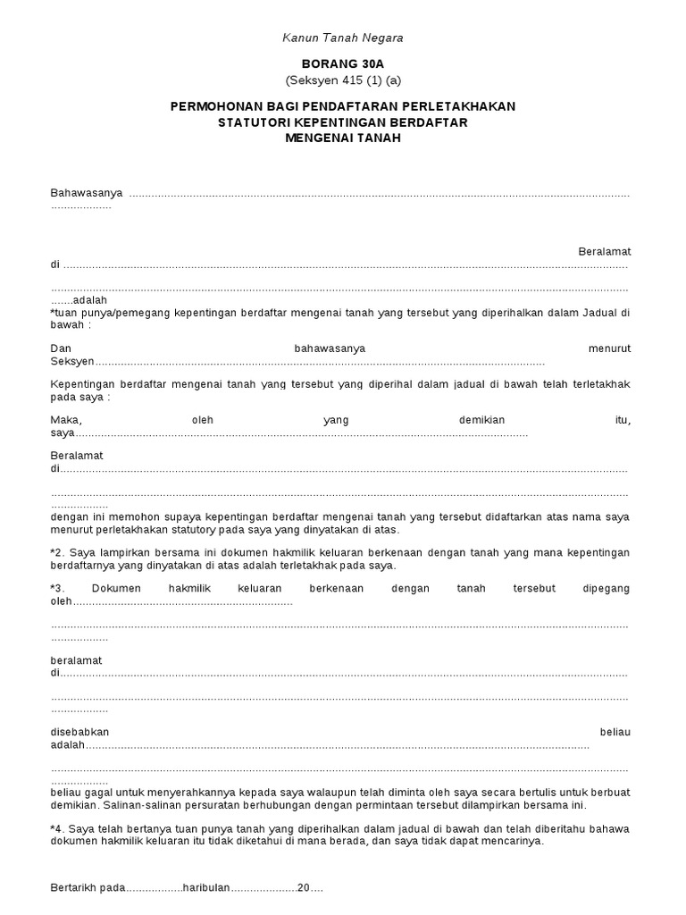 Komponen utama dalam peruntukan kanun tanah negara yang menjadi fokus perbincangan dalam kajian ini adalah terhadap penegasan ke atas aspek 'pendaftaran'. Akta akta kanun tanah negara bawah seksyen 42, subseksyen 56(4) dan seksyen 68a, 75a, 75b Mengandung semua pindaan hingga 15hb mac by malaysia. Download perintah kanun tanah negar1. Saya mohd amirul bin awang, penolong pentadbir tanah besut pada menjalankan kuasa yang syen 257/263 kanun tanah negara, dengan ini perintah supaya dijual tanah/bahagian tanah yang tak dipecahkan/pajakan/pajakan kecil yang diperihallean di dalam jadual di bawah.
